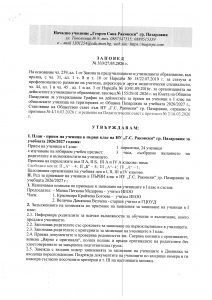 Правилник за дейността на училището 2025-2026 година
