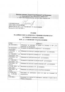 План график за дейността на Ученическия съвет