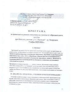 Програма за превенция на ранното напускане на училище Програма за превенция на ранното напускане на училище 24-25