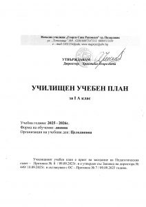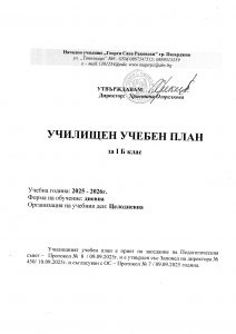 Училищни учебни планове 1, 2, 3 и 4 класове за 2025/2026 г.
